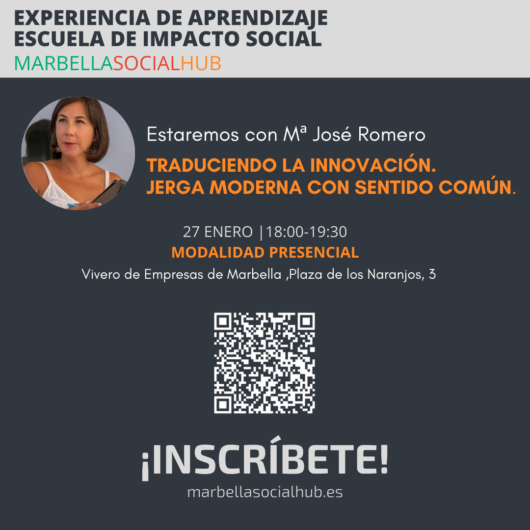 Traduciendo la Innovación. Jerga Moderna con Sentido Común facilitada por Mª José Romero Aceituno, una profesional capaz de potenciarte y que te comentará cómo descifrar el camino a través de la Innovación